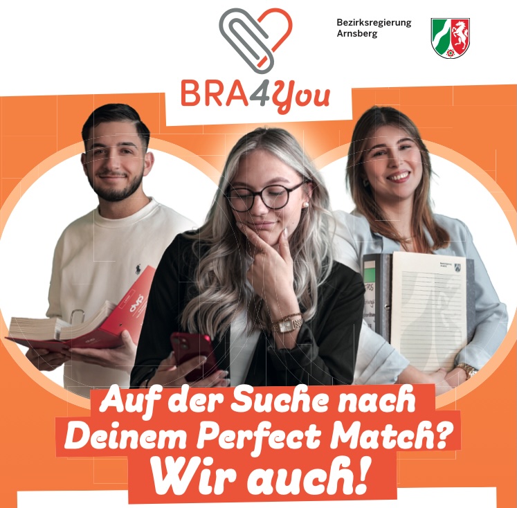 Die Bezirksregierung Arnsberg bildet auch im Jahr 2026 wieder in zahlreichen Berufen aus – sowohl im dualen Studium als auch in einer dualen Ausbildung >>>.