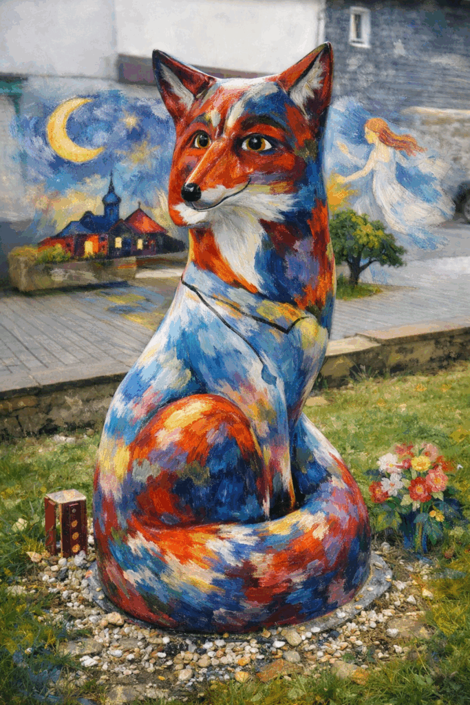 Übrigens: Die KI hat das Bild in Anlehnung an den Stil von Marc Chagall gestaltet, einem berühmten russisch-französischen Künstler.