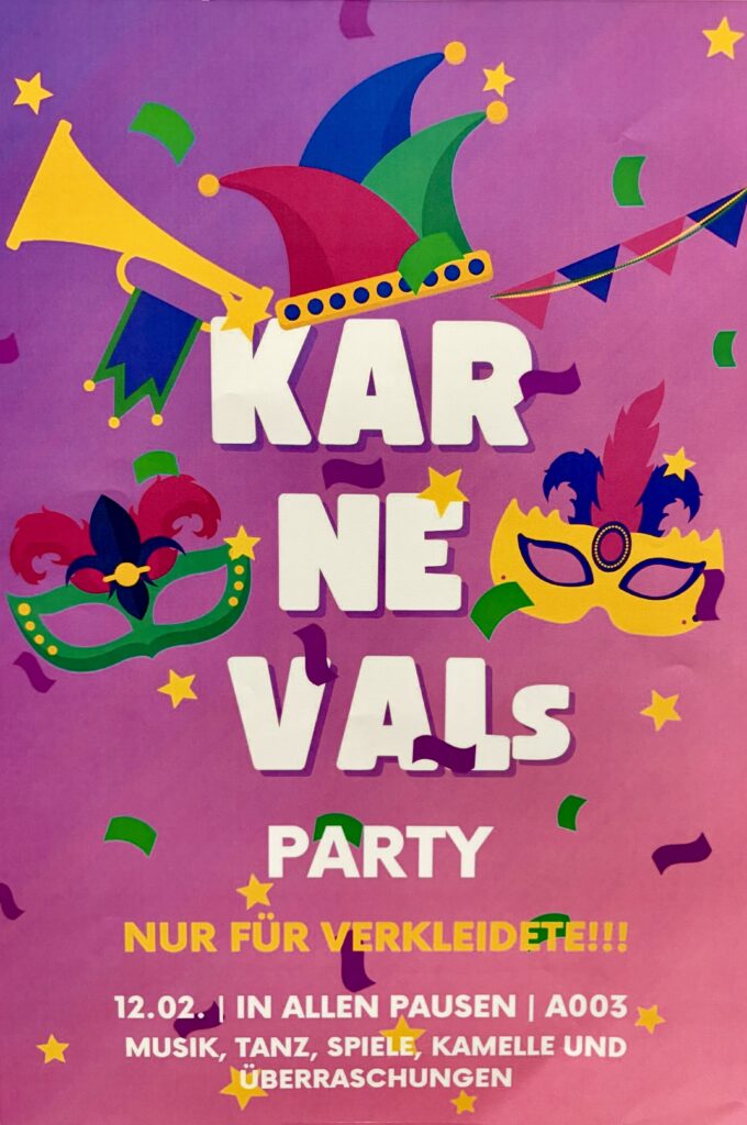 Am kommenden Montag, 16.02., ist übrigens wegen Rosenmontag unterrichtsfrei.