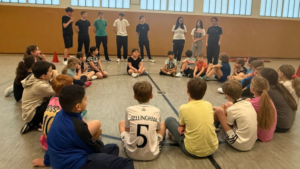 Im Rahmen der Projekttage „Gesund und fit“ der Grundschule Voerde unterstützten Schülerinnen und Schüler der Klasse 10C tatkräftig die dritten Klassen der nahegelegenen Grundschule und sorgten für jede Menge Bewegung und Begeisterung in der Sporthalle.