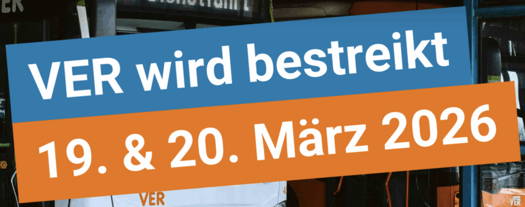 die VER informiert darüber, dass auch am morgigen Freitag, 20. März 2026, aufgrund des von Gewerkschaftsseite angekündigten Streiks von Betriebsbeginn bis –ende im gesamten Verkehrsgebiet das reguläre Fahrtenangebot einschl. Einsatzwagenverkehr der VER entfällt.