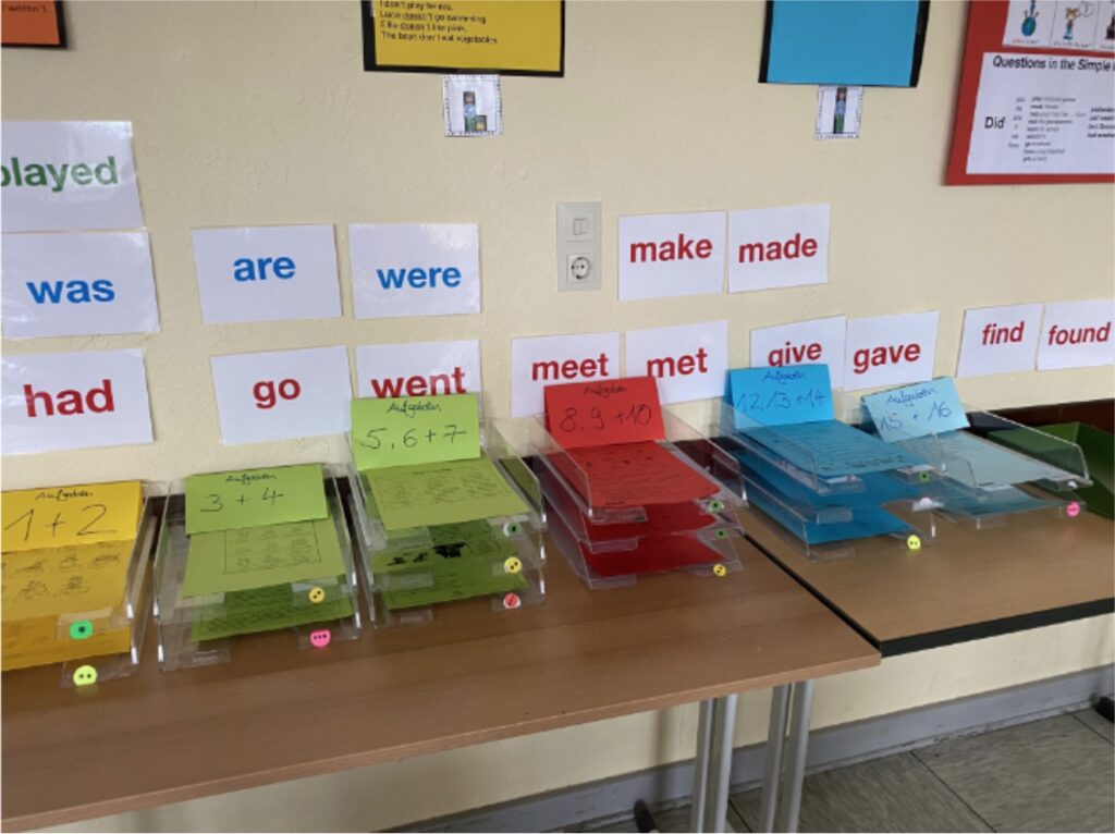 Die Schüler*innen erhalten für das selbstständige Lernen Arbeitsaufgaben,